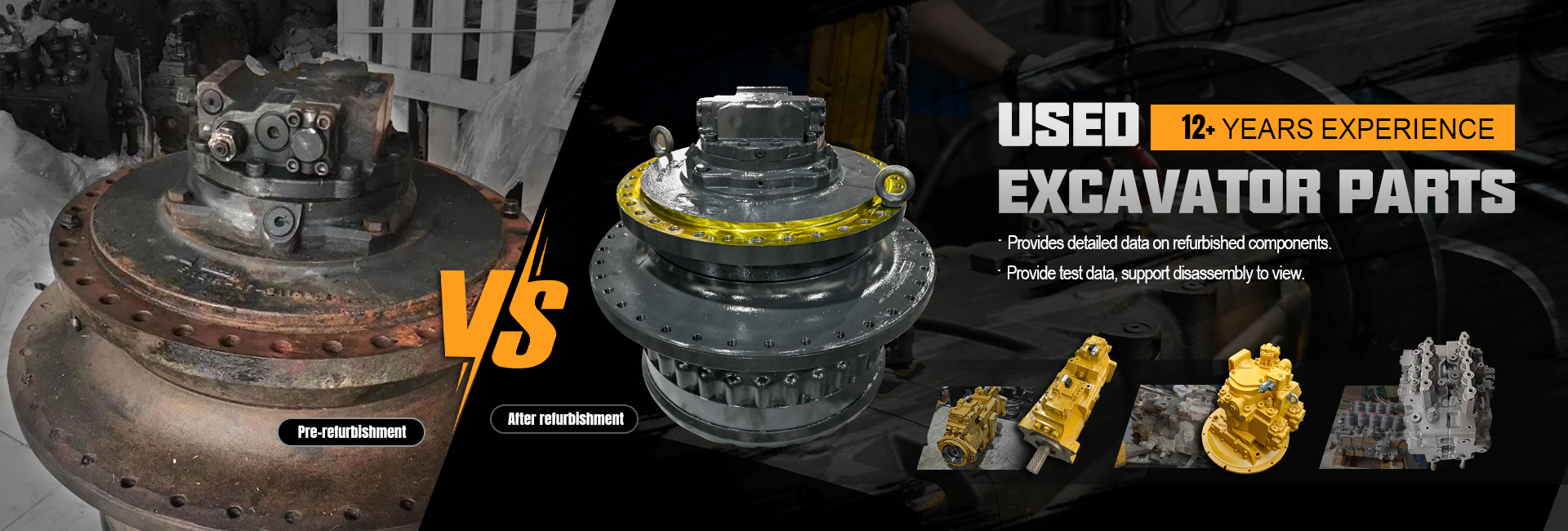 Systemy napędowe: zestawy silników ruchowych, zestawy silników swingowych, napędy końcowe i skrzynki biegów.